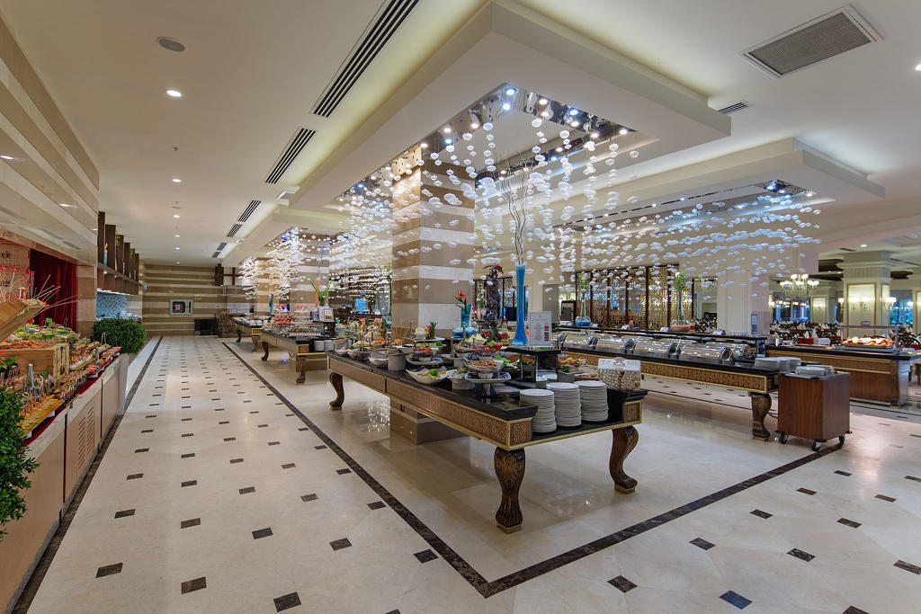 Sabah, öğle ve akşam açık büfe yemekler ücretsiz. Tesisin belirlemiş olduğu markalar dahilinde bazı yerli alkollü ve alkolsüz içecekler lobi barda 24 saat, bazı yabancı içecekler ise 10.00-01.00 saatleri arasında ücretsiz.