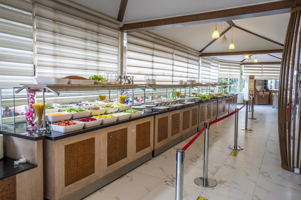 Konaklama Açıklaması: | Kahvaltı (07:00-10:00) Geç kahvaltı (10:00-11:00) Öğle yemeği (12:30-14:30) Snack (12:30-16:00) Snack (12:30-16:00) Çay – Kahve Saati (16:30-17:30) Pastane (18:00-23:00) Akşam yemeği (19:00-21:00) Gece snack (23:30-01:00) Dondurma (14:30-16:30) Taze sıkılmış Portakal Suyu (ücretli ) Minibar girişte soda, su koyulur, günlük olarak su yenilenir. Lokal alkollü & alkolsüz içecekler ve bazı ithal alkollü içecekler konsepte dahildir. (24 Saat) Akşam A’la Carte Yemeği – En az 7 gece konaklama yapan misafirlerimiz için 1 kez ücretsiz olarak verilmektedir. Ayrıca 01.06 – 15.09 tarihleri arasında servis vermektedir) Wonder Bar (A lobby) (24 Saat) Dream Bar (B Lobby) (18:00-23:00) Havuz Bar (10:00- 24:00) Plaj Bar (10:00- 16:30) Kingdom Bar (10:00- 24:00) Golden Main Bar (12:30- 14:30) Kingdom Disco (23:00- 24:00) |