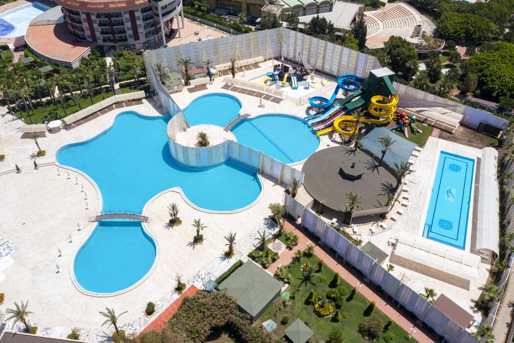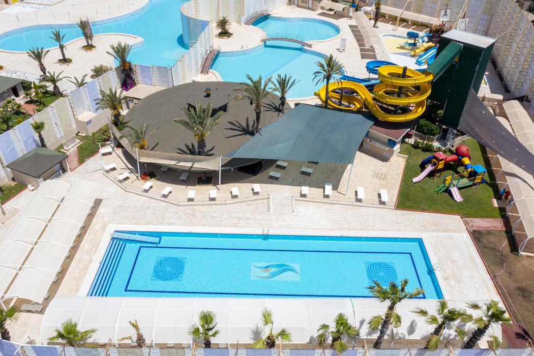Diğer Notlar Oda servisi, çamaşır yıkama, tenis kortu ışıklandırma, futbol sahası, kiralık bebek arabası (günlük olarak ücretli), oto yıkama (deluxe ve süit odalara ücretsiz) ücretlidir. Aquapark havuzların kullanım saati: 08:00-19:00 arasındadır. 3 adet açık yüzme havuzu bay, bayan ve karma olarak kullanılmaktadır. Kapalı havuz bayanlara özeldir. (6 yaşına kadar erkek çocuk girebilmektedir.) Ortak kullanım havuzunda haşema zorunluluğu bulunmaktadır. Tesise giriş saati 15:00- çıkış saati 11:00 dir. Tesis gerekli doluluğu sağlayamadığı takdirde konsept veya konsept dahilinde değişiklik uygulayabilir |