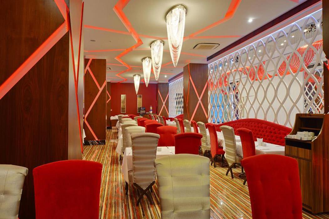 Konaklama Açıklaması: | Ultra Herşey Dahil sistemi 08:00 – 24:00 saatleri arasında geçerlidir. Açık Büfe Kahvaltı, Öğle ve Akşam Yemeği ile 08:00 - 24:00 saatleri arasında tüm yerli ve bazı yabancı alkollü ve alkolsüz içecekler ücretsizdir. A la carte restoranlar (Bir gün önceden rezervasyon yaptırmak gereklidir. Kişi başına bir kez) |